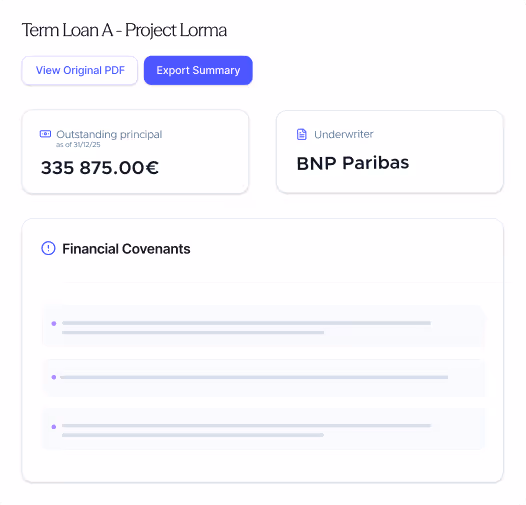 Extract terms, rates, covenants, and repayment schedules from contracts. Reconcile with accounting data instantly.